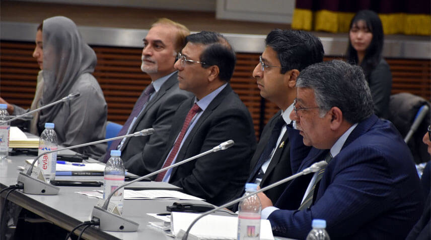 Following the Joint Dialogue, the Pakistan Business Forum was held in Tokyo. The Forum was co-organized by the Embassy of Pakistan in Tokyo and the Japan External Trade Organization (JETRO), with the cooperation of the Ministry of Economy, Trade and Industry of Japan, and was attended by Japanese and Pakistani business leaders.
