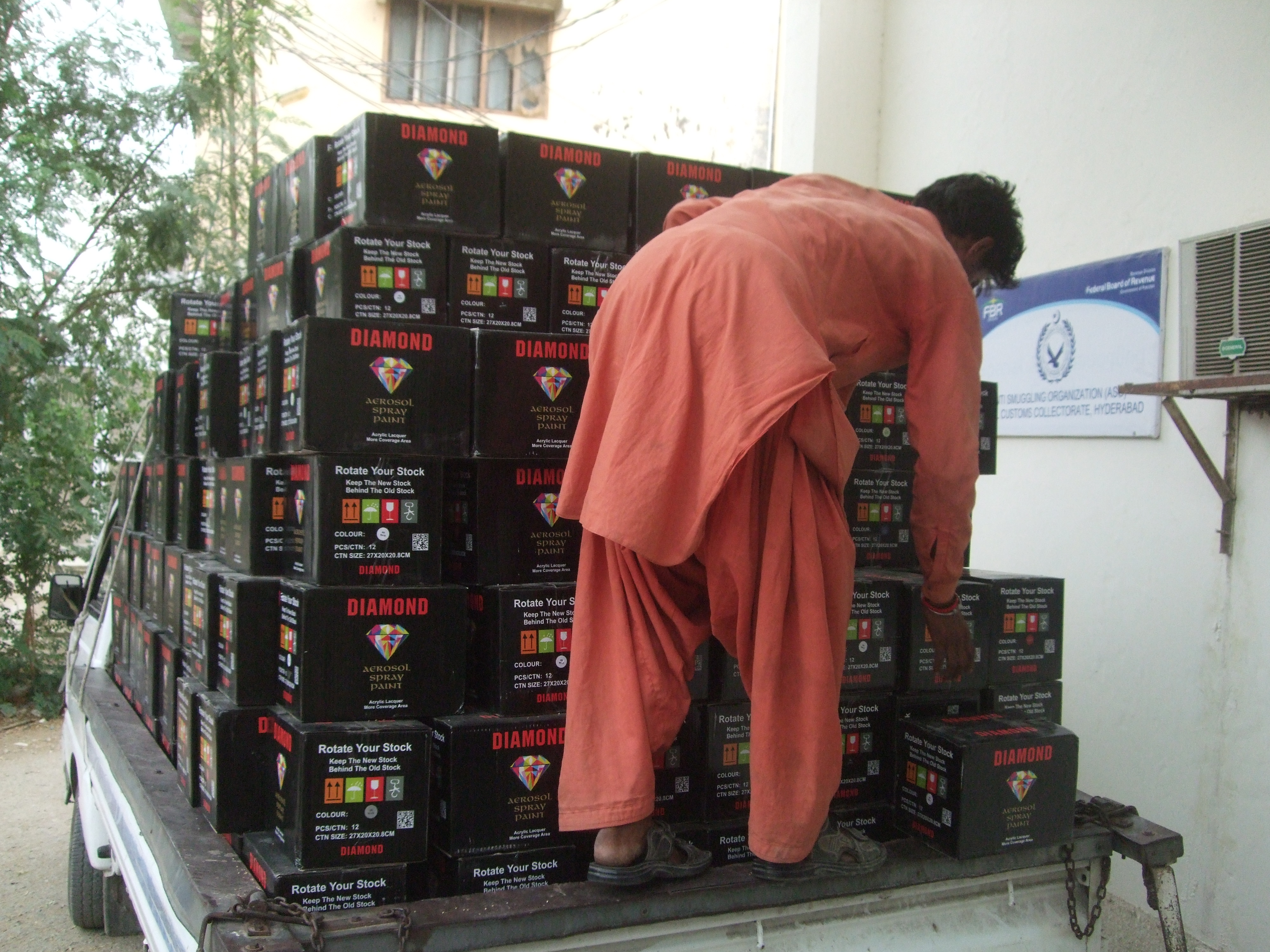HYDERABAD: Anti-Smuggling Organization (ASO) confiscated smuggled 540 sacks of diamond aerosol spray paint during a raid near Hyderabad Bypass. Sources...