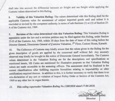 KARACHI: The Directorate General of Customs Valuation, a division of the FBR, issued Valuation Ruling No. 2069/2026 on April 16,...