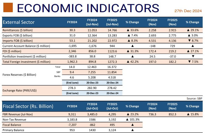 Meanwhile, the Consumer Price Index (CPI) inflation recorded at 4.9 percent on YoY basis in November 2024 as compared to 7.2 percent in the previous month and 29.2 percent in November 2023.